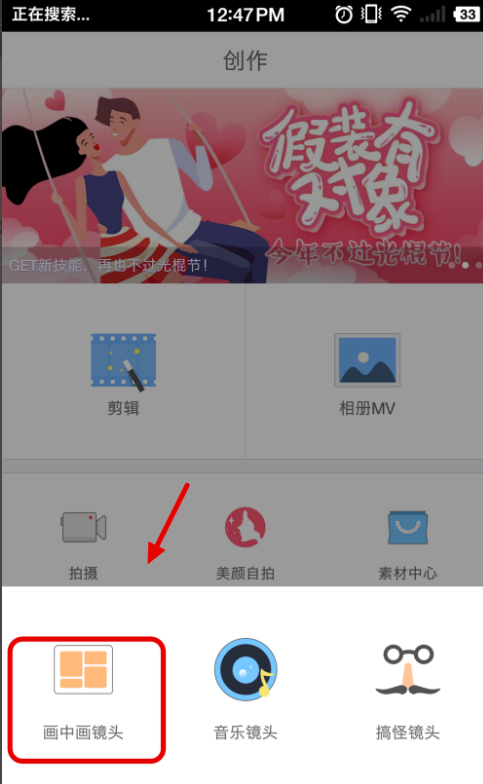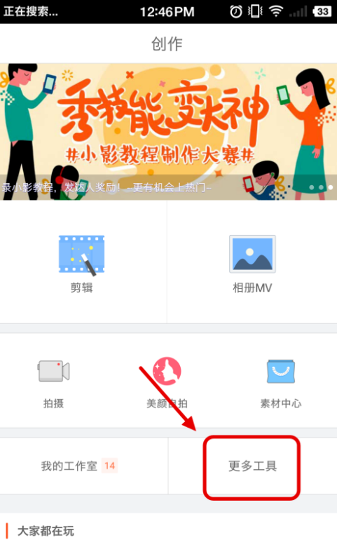 1、打开小影app,点击【创作】-【更多工具】选择到【画中画】,
