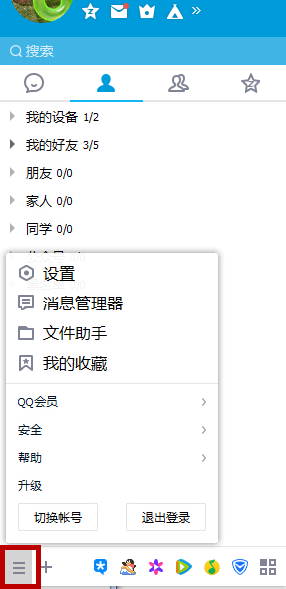 2、打开QQ主面板,点击QQ主面板下方的齿轮设置。