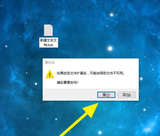 2、接着我们把文本文档的后缀名txt,修改为bat。
