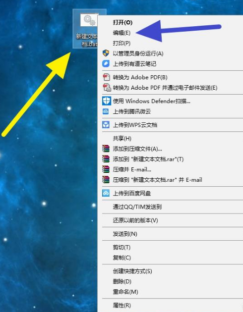 4、我们使用鼠标右键点击修改完成的文本文档,选择下拉列表中的编辑功能。