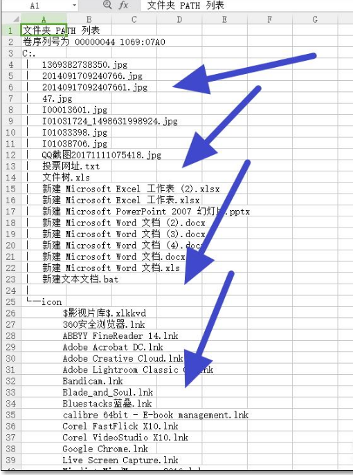 9、打开得到的表格文件,就可以看到文件夹中所有内容的名字了,特别的方便快捷!