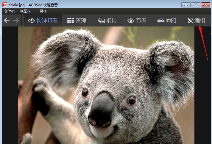1、首先我们打开acdsee看图软件,打开需要处理的照片,然后点击右上角的编辑。