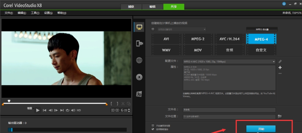 6、在上面调整好,点击开始就能渲染导出了。