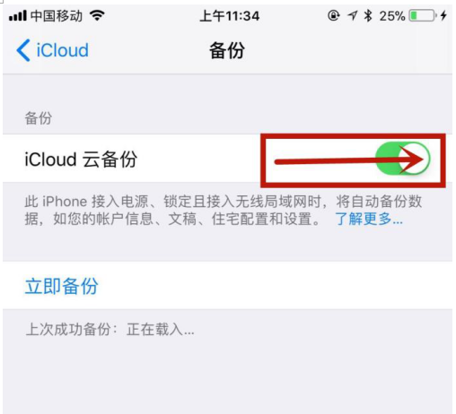 最后关闭“iCloud云备份”开关就可以了。