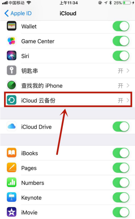 然后点击“iCloud云备份”,如下图所示。