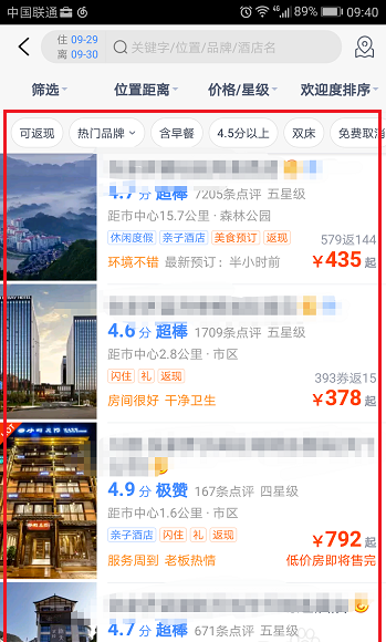 5、点击酒店,可以通过筛选条件进行筛选,预订晚上住的地方,如下图所示: