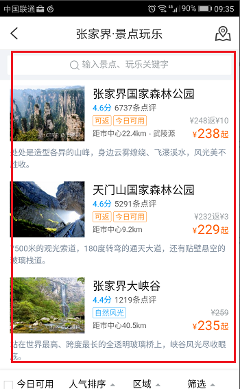 4、我们首先点击景区,可以提前一天进行订票,如下图所示: