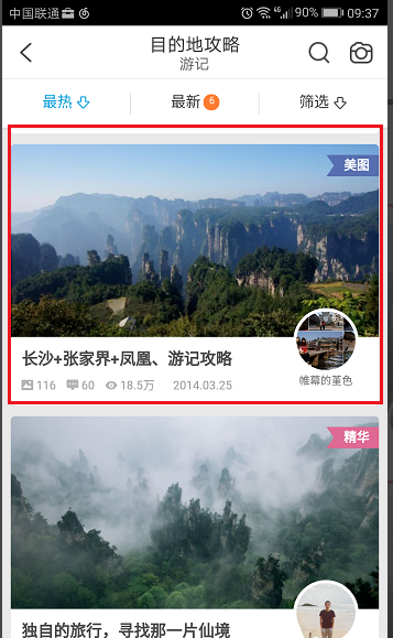 6、我们也可以看一下旅游的感受、游记,如下图所示: