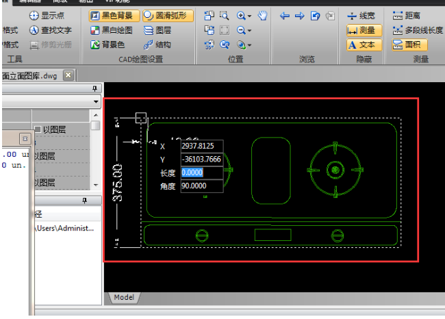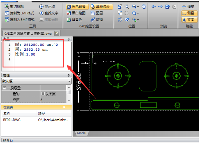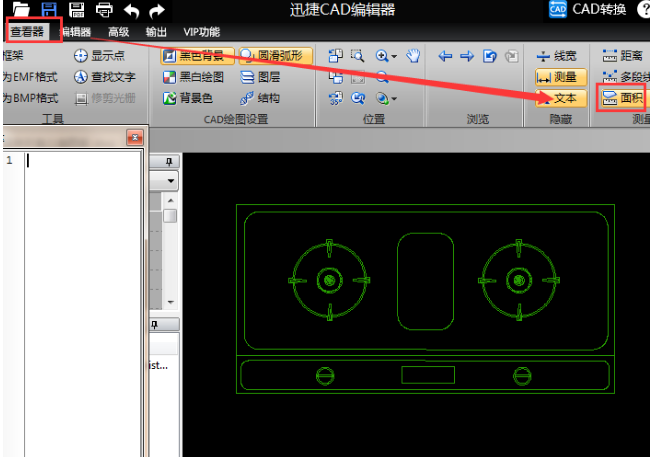 2、打开CAD文件,点击界面上方的“查看器”选项,然后选择里面的“面积”功能,即可对CAD文件里的图形面积进行测量。