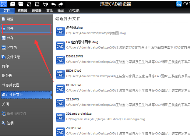1、首先运行迅捷CAD编辑器,点击“文件”—“打开”选项,将需要查看的CAD文件打开。