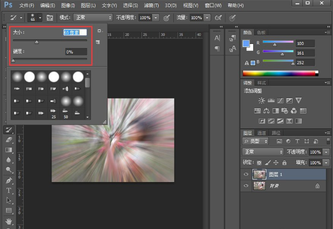 4、数量选择“100”,模糊方法选择“缩放”,品质选择“最好”,然后点击“确定”。