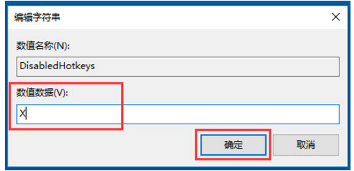 6、输入你要禁用的组合键,比如Win+X,直接输入X即可,如果要禁用更多的可以连续输入ABC等。