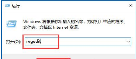 2、在运行栏位输入regedit,点击确定按钮;