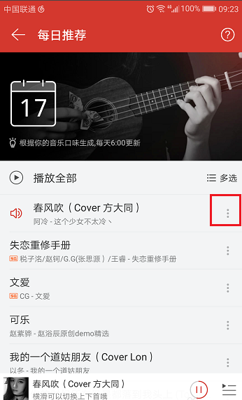 3、在歌曲选择界面,点击右边的菜单图标,如下图所示: