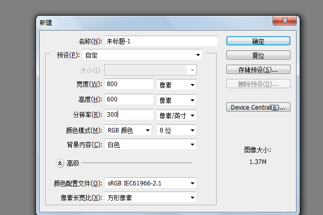 1、打开Photoshop软件,进入界面,按住Ctrl+N新建画布,新建一个800*600像素的空白画布。