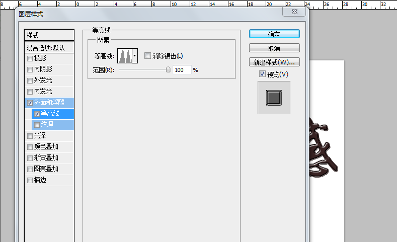 3、点击“图层样式”,选择“斜面和浮雕”-“等高线”,中的“环形-双环”。