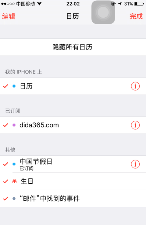 4、之后在日历软件中点击图片最下面的“日历”,进入编辑界面,然后勾选下面一排的“生日”,点击完成,联系人的生日就成功显示在你的日历当中了。