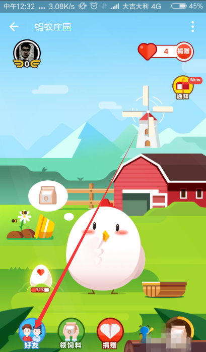 2、进入蚂蚁庄园,在界面点击“好友”选项,查看已经开通了这个功能的好友。