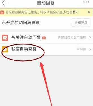4、点击“私信互动”,界面的“自动回复”,如图。