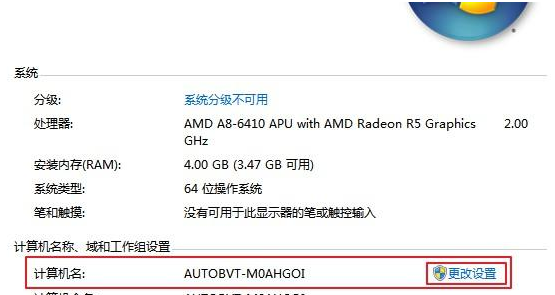 在弹窗中单击计算机名右边的“更改设置”按钮,