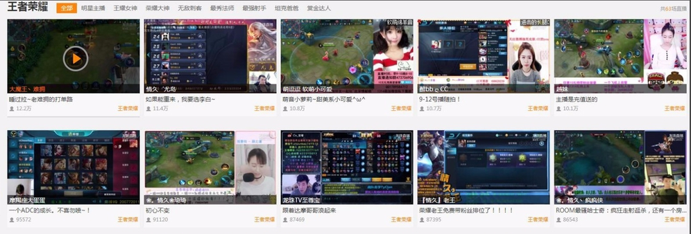 2、登录之后找一个频道,譬如游戏频道的王者荣耀专区,点击进入游戏直播区,当然其他的专区也可以。