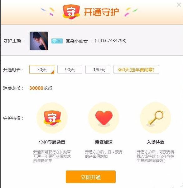 龙珠直播怎么给主播开通守护?