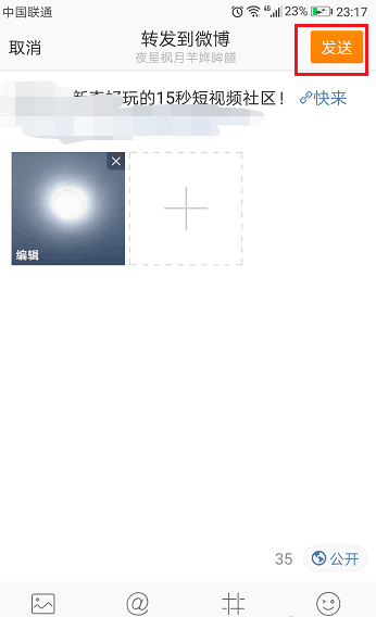 3、选择分享途径之后,会要求写分享心得,也可以不写,点击发送,如下图所示: