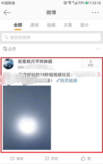 5、可以看到我们刚刚分享的短视频主页,可以点击进去直接观看,如下图所示: