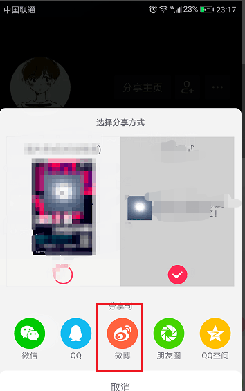 2、弹出对话框之后,我们可以看到分享主页有两种样式,选择自己喜欢的,和分享途径,如下图所示:
