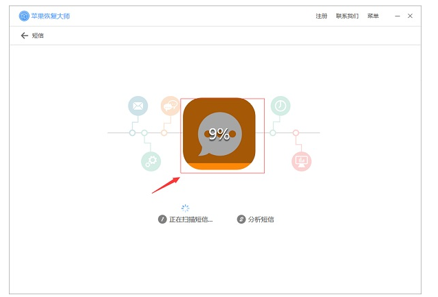 3、进入扫描界面。扫描的时间根据短信的内存大小决定的,一般情况下是5分钟左右,等到扫描结束后进入短信界面。