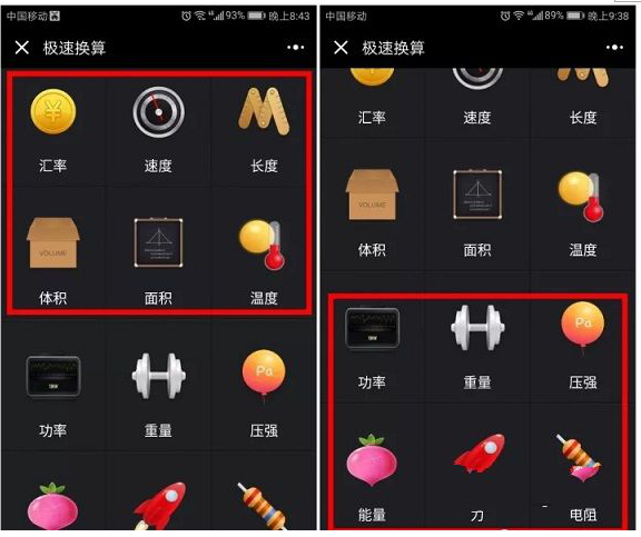 日常生活中我们经常会遇到一些计量单位的换算,比如长度、重量、温度、面积、汇率等,大家都会习惯用手机计算器。但对于一些面积、压强、功率等计算我们很难在计算器中找到辅助工具,今天小编要为大家分享一个微信超强换算工具,借助小程序就可以轻松计算一些复杂的换算!