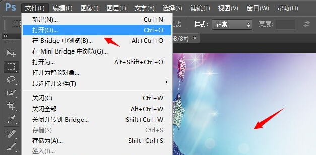 2、接着,从网络上下载好漂亮的Ps背景图案,并从“文件”中打开,如图所示。