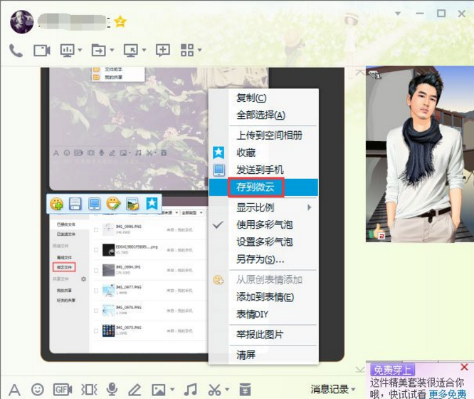 2、然后我们点击QQ左边的对话框里面就会有相应的提示,我们需要点击的是“存到微云”按钮;