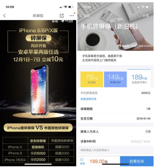 相比之下,第三方的碎屏险就非常便宜了。京东提供的iPhoneX碎屏险299元,提供碎屏换新机服务;支付宝上线的碎屏险售价189元,提供碎屏保修服务,这样的价格对于大多数人都是可以接受的。