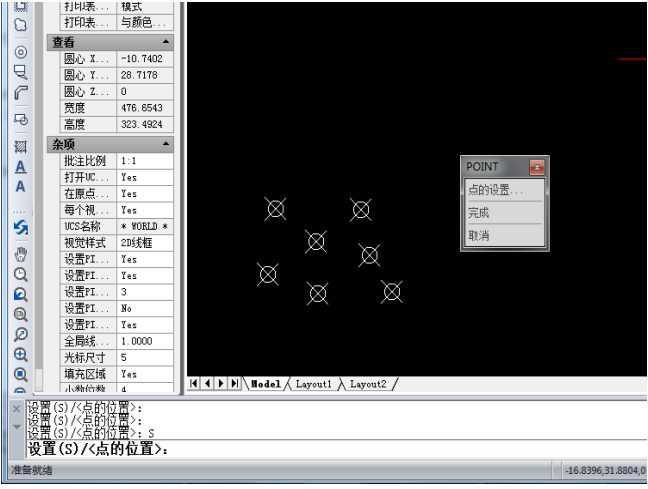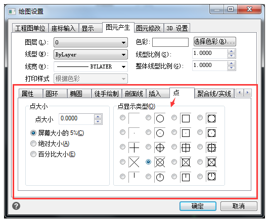 而在命令提示框以及下方的命令提示中有点的设置选项。要设置点的样式,直接点击或输入对应选项命令,就可以打开“绘图设置”对话框。