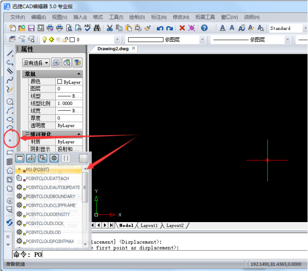 打开迅捷CAD编辑器专业版,绘制点的命令是“POINT”(不区分大小写)。点击选择工具栏上的点命令,或输入POINT(快捷键“PO”)按空格确认,就可以绘制点。若直接在窗口中点击或输入坐标位置就可以画点,点样式为默认样式。