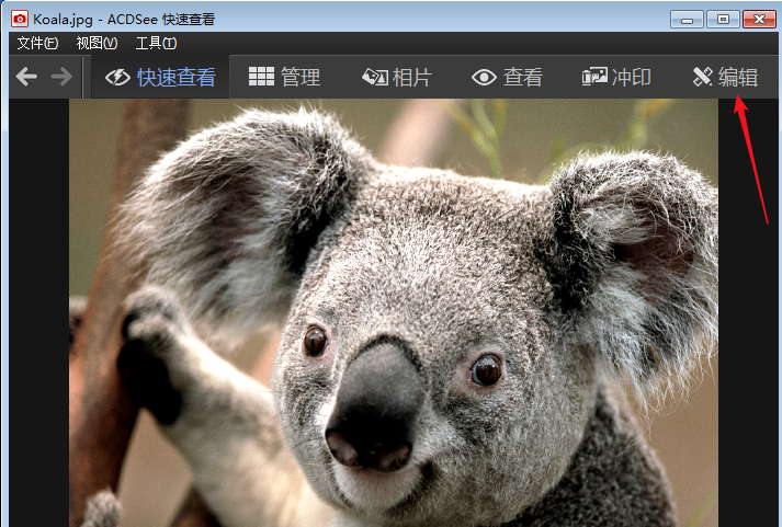 1、首先打开acdsee看图软件,打开需要处理的照片,然后点击右上角的编辑。