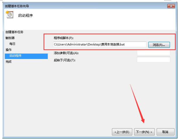 7、点击浏览找到前面编辑好的.bat文件,点击选择这个文件。