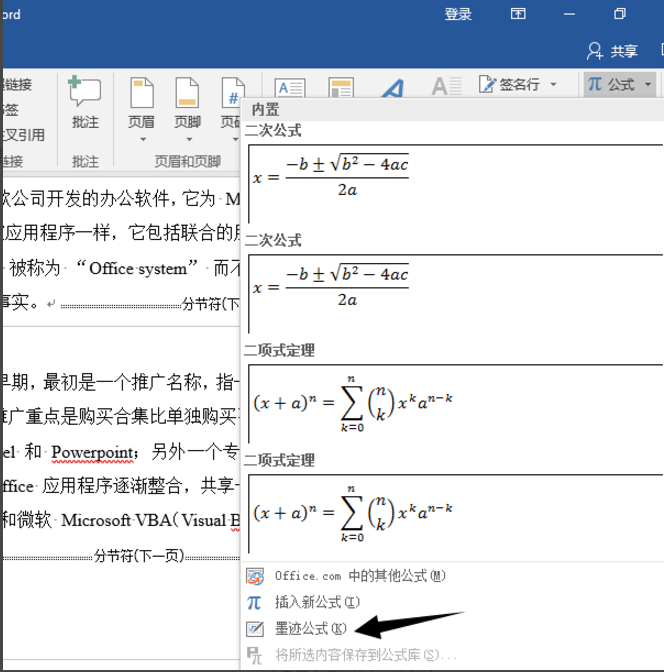 如何在word2016中进行公式编辑?