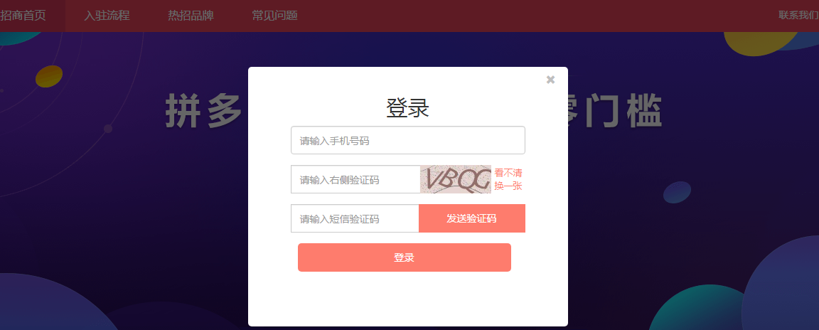 4、进入“我要入驻”页面后,注册登录一个拼多多的账户,