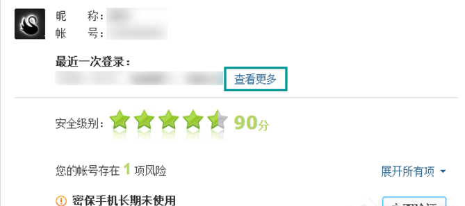 2、这时就会用电脑默认浏览器打开QQ安全中心,点击“最近一次登录”下方的“查看更多”;
