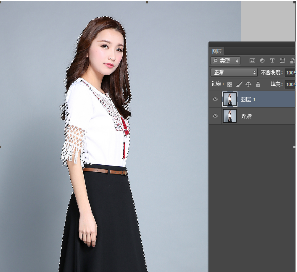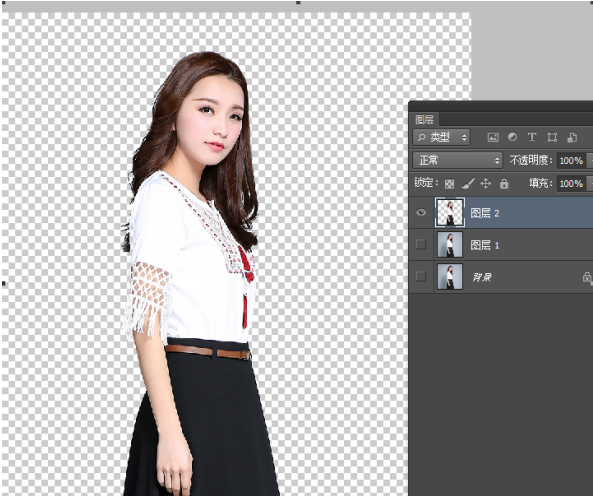 7、CTRL+J 复制新建出一个图层2,就这样,人物就被抠出来啦。可以把背景层和图1小眼睛关掉,隐藏图层,就可以看到人物完整的显示出来了!
