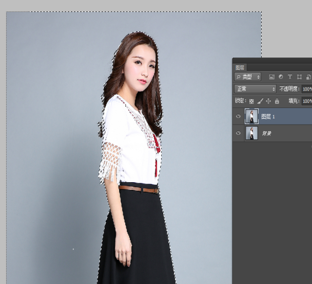 1、以下教程是用PS色彩范围来轻松抠出人物头发丝,首先打开Photoshop软件,打开一张图片,复制一层为图层1,