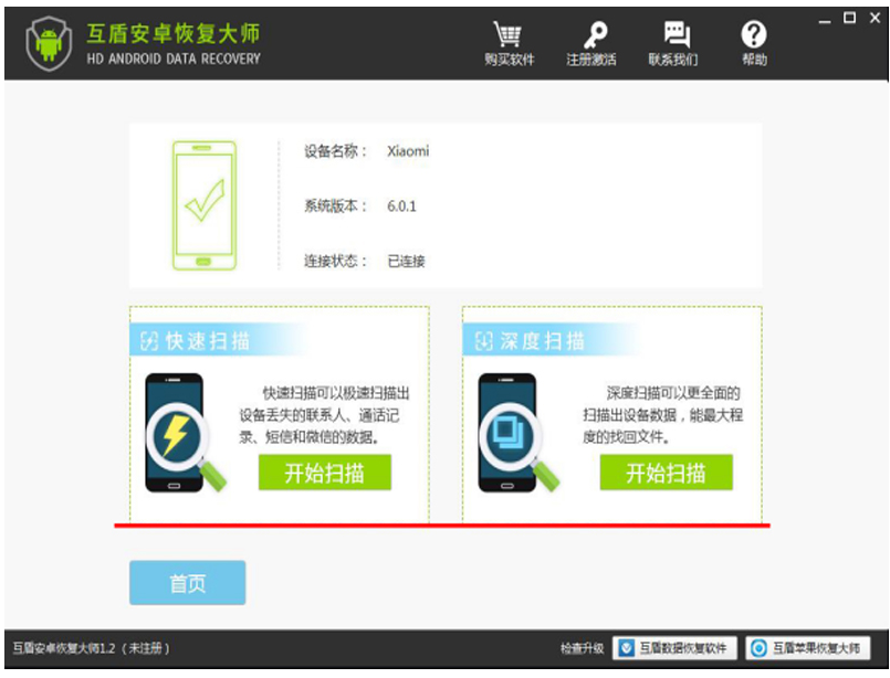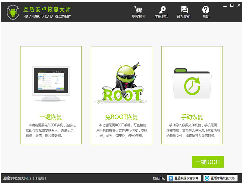 1、安装并运行互盾安卓恢复大师,软件打开如下图。