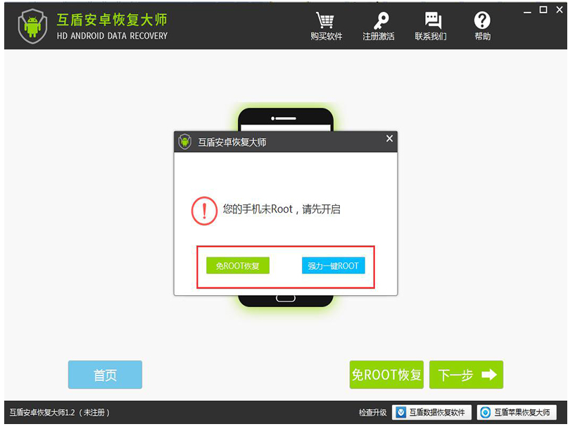 注:若是手机没有获取ROOT权限,那么可选择“免ROOT恢复”,或者是点击“强力一键ROOT”,先为手机获取ROOT权限后再重新读取数据。