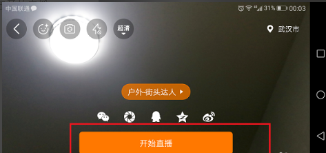 4、点击横屏直播之后,点击开始直播,如下图所示:
