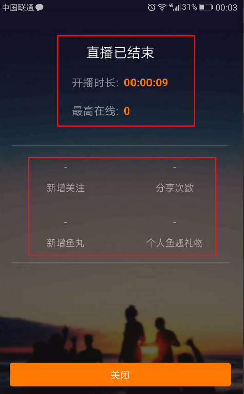 6、我们可以看到直播的时长,观看人数、礼物、新增请关注等,如下图所示: