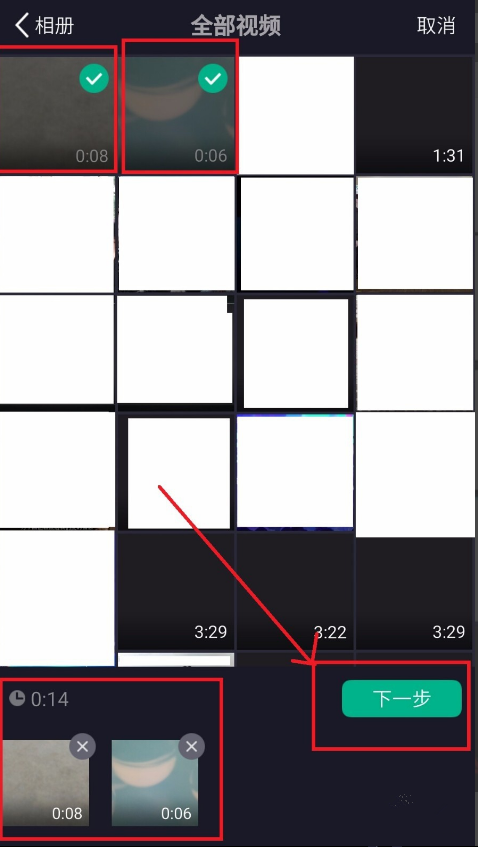 2、选择你要合成的视频,点击下一步,