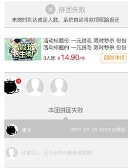 情况一、拼团没有成功