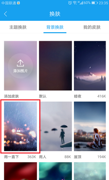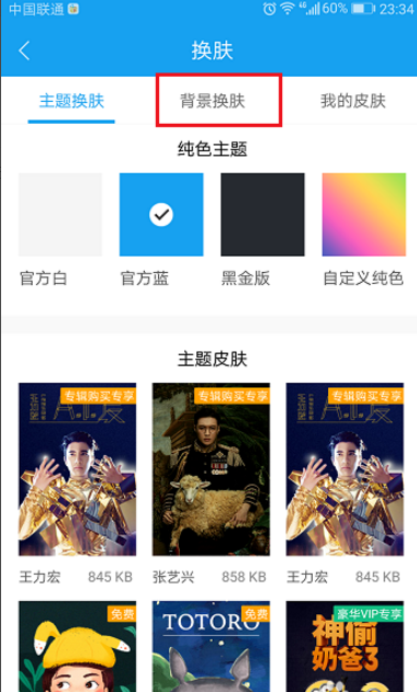 4、点击背景换肤,选择喜欢的背景,进行点击下载,如下图所示:
